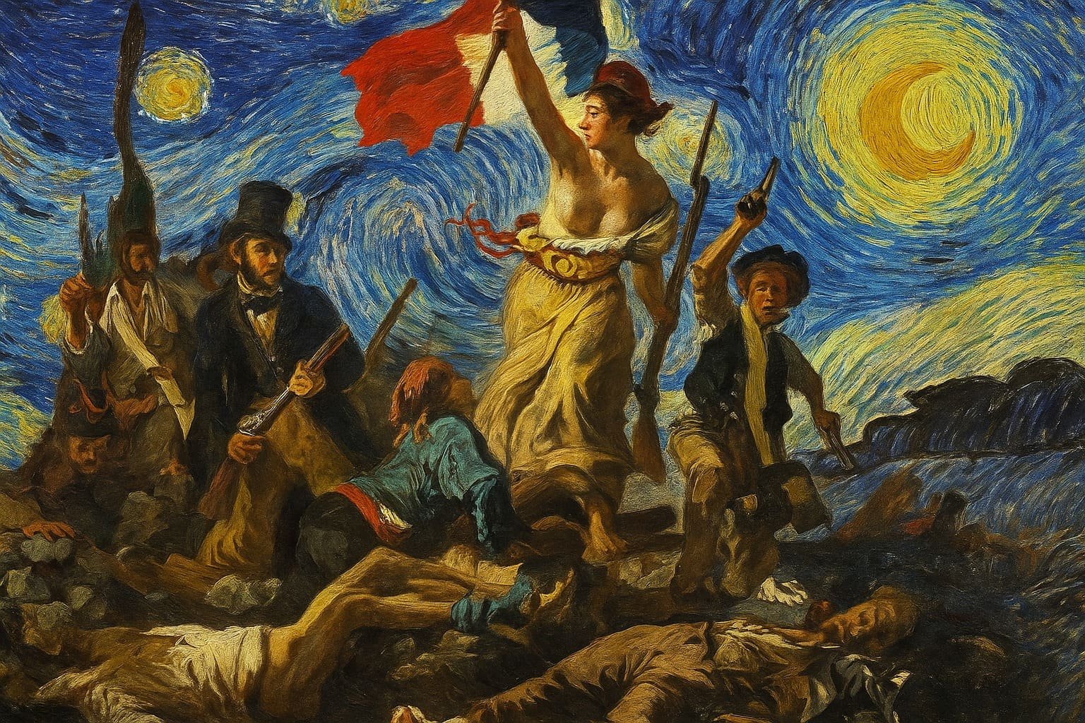 Desde esta mirada, la Escuela de Frankfurt nos recuerda que el arte puede ser una forma de crítica y transformación social. En obras como La Libertad guiando al pueblo de Eugène Delacroix, la figura femenina que alza la bandera no solo representa un hecho histórico, sino una metáfora de la libertad y la resistencia. El color, la luz y la postura de los personajes crean una retórica visual que habla de lucha, sacrificio y esperanza colectiva. El arte, entonces, se convierte en un medio para cuestionar las estructuras de poder y promover el cambio.